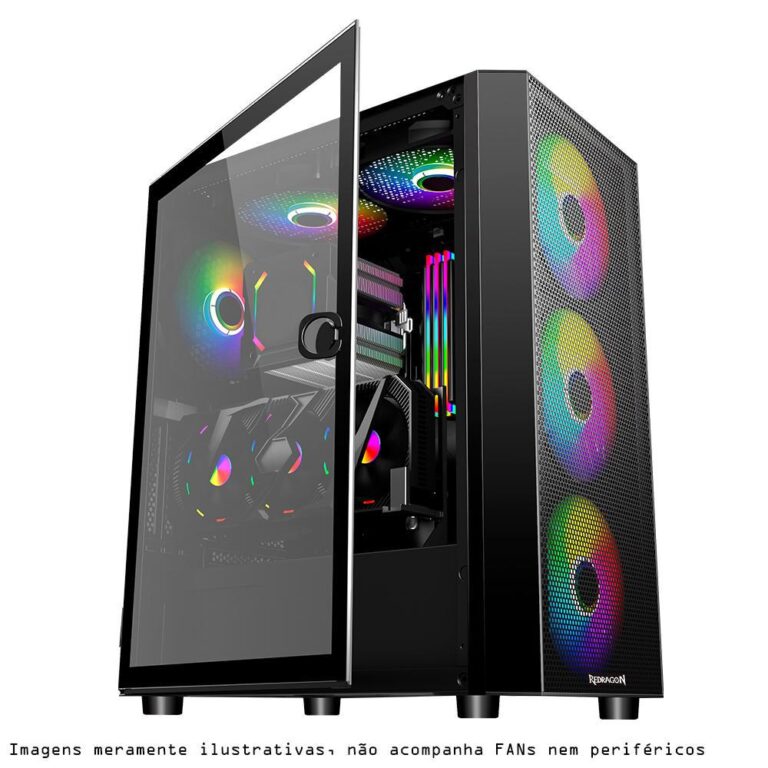 Gabinete Gamer Redragon Aeroglass S/Fan S/Fonte Vidro Temperado Preto – CA-602B