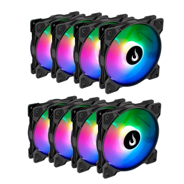 Kit 8 Fans Rise Mode X Led Rainbow 120mm Preto – RM-XLD-RBW-8