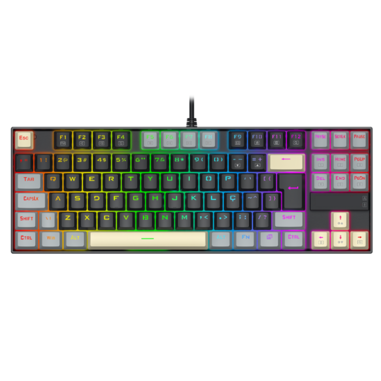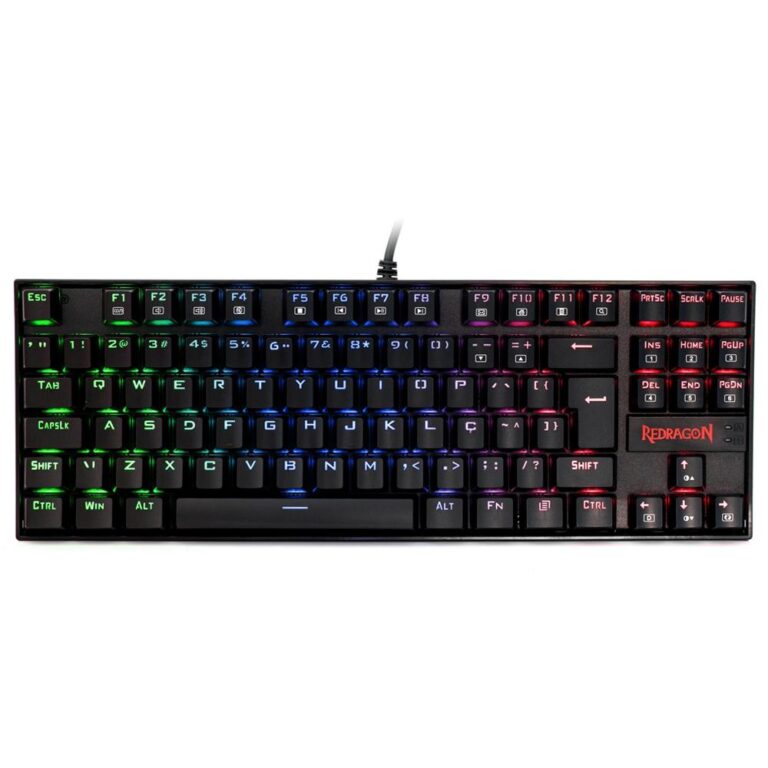 Teclado Mecânico Gamer Redragon Kumara RGB Switch Marrom TKL USB Branco Preto e Cinza – K552WGL-RGB