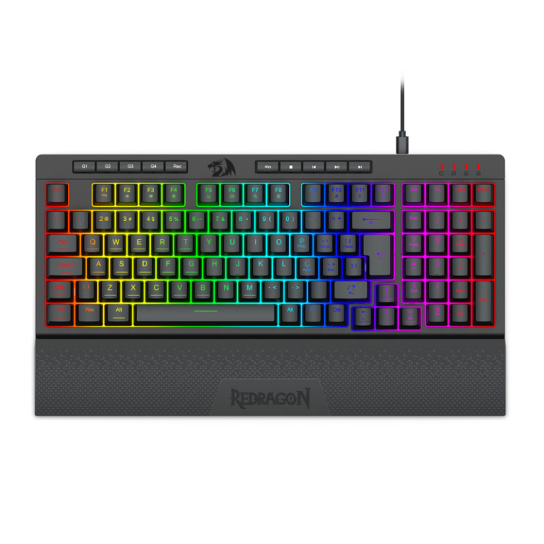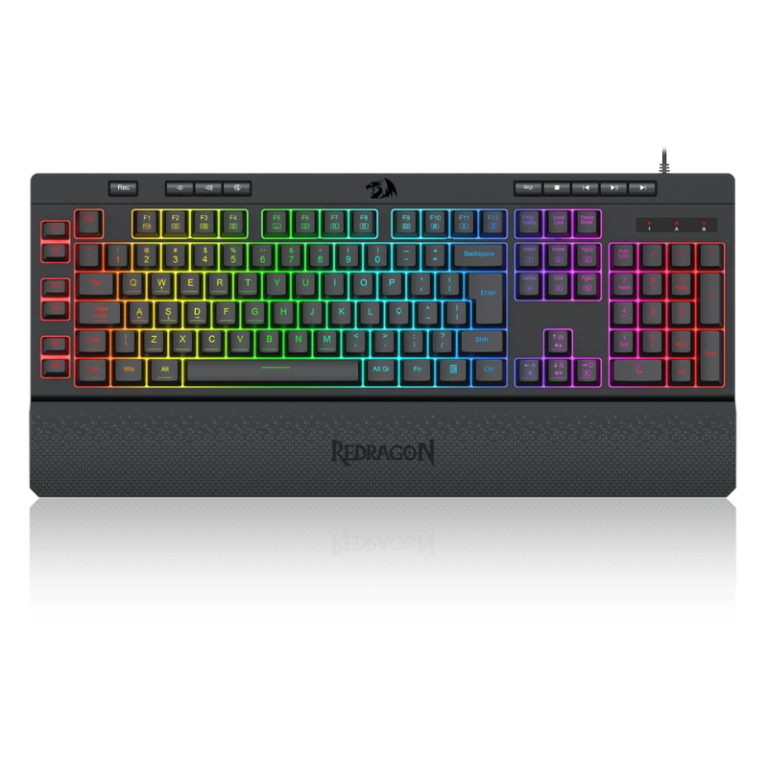 Teclado Membrana Gamer Redragon Shiva 98 RGB c/ Apoio de Pulso Preto – K515-RGB PT
