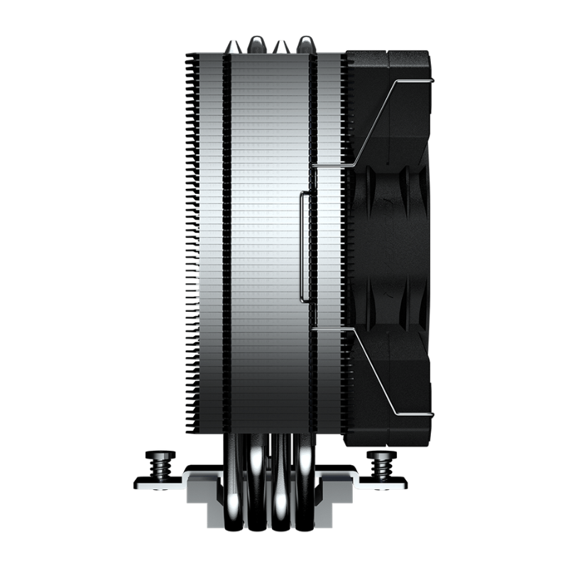 Seu dissipador em torre única conta com 4 heatpipes de cobre em contato direto, o que melhora significativamente a transferência de calor da CPU para o conjunto de aletas. O design com aletas laterais em ângulo de 90 graus cria um verdadeiro túnel de vento, otimizando o fluxo de ar e aumentando a eficiência da dissipação térmica.