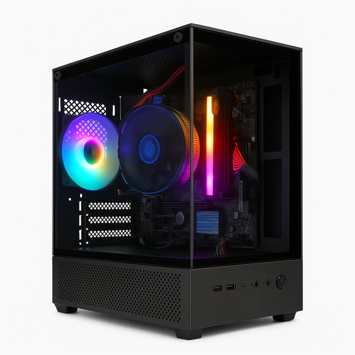 • Estética Premium: Gabinete com vidro na frente e lateral, ventoinha ARGB e memória com dissipador RGB vermelho.