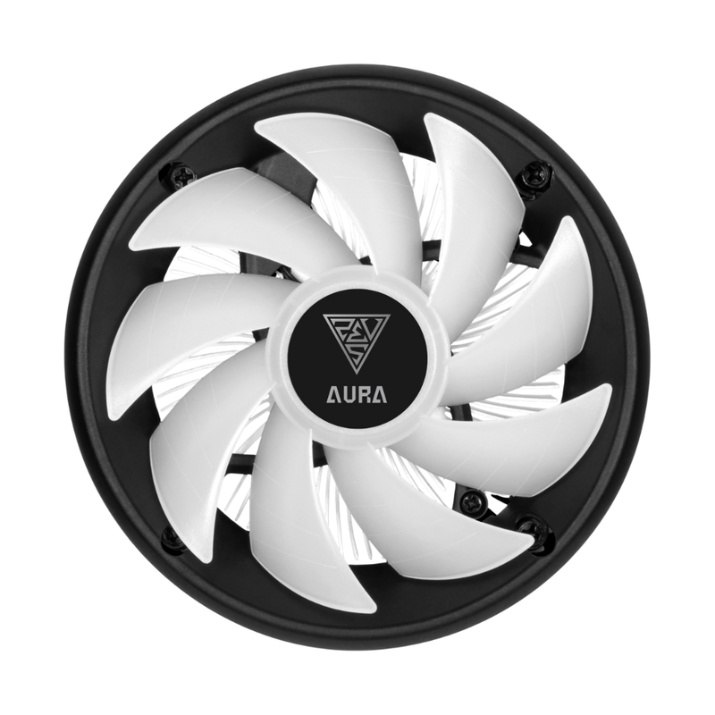 A fan trabalha com rotação variável entre 800 e 2000 RPM, controlada via conector PWM de 4 pinos, ajustando automaticamente a velocidade conforme a necessidade do processador. Com fluxo de ar de 39,8 CFM, pressão estática de 1,63 mmH₂O e nível de ruído que varia entre 10 e 30 dBA, o Aura GA1 entrega um funcionamento eficiente e relativamente silencioso.