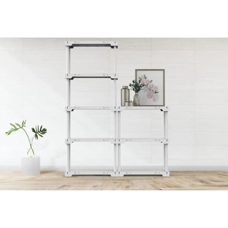 Com suas cinco prateleiras brancas de polipropileno, esta estante é leve, resistente e fácil de montar, dispensando o uso de ferramentas. Cada prateleira possui uma capacidade de peso de até 25 kg, proporcionando espaço suficiente para armazenar uma variedade de objetos.