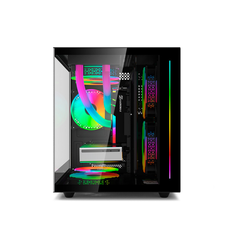 A compatibilidade com water cooler permite que você implemente soluções avançadas de resfriamento líquido, garantindo que seu sistema permaneça em temperaturas ideais, mesmo durante sessões de jogos intensas. Além disso, o gabinete oferece amplo espaço para a instalação de ventoinhas, com suporte para até dois coolers de 12cm nas laterais, dois no topo, dois na parte inferior e um na parte traseira, proporcionando uma excelente circulação de ar.