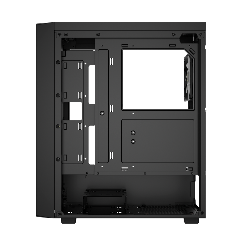O espaço interno foi projetado para otimizar organização e compatibilidade com hardwares robustos. Ele oferece suporte para coolers de CPU com até 160 mm de altura, placas de vídeo com até 300 mm de comprimento e fontes de alimentação de até 150 mm. As baias internas permitem instalar HDs e SSDs com flexibilidade, garantindo armazenamento adequado para qualquer configuração. Suas 7 slots de expansão PCI agregam ainda mais versatilidade ao projeto.
