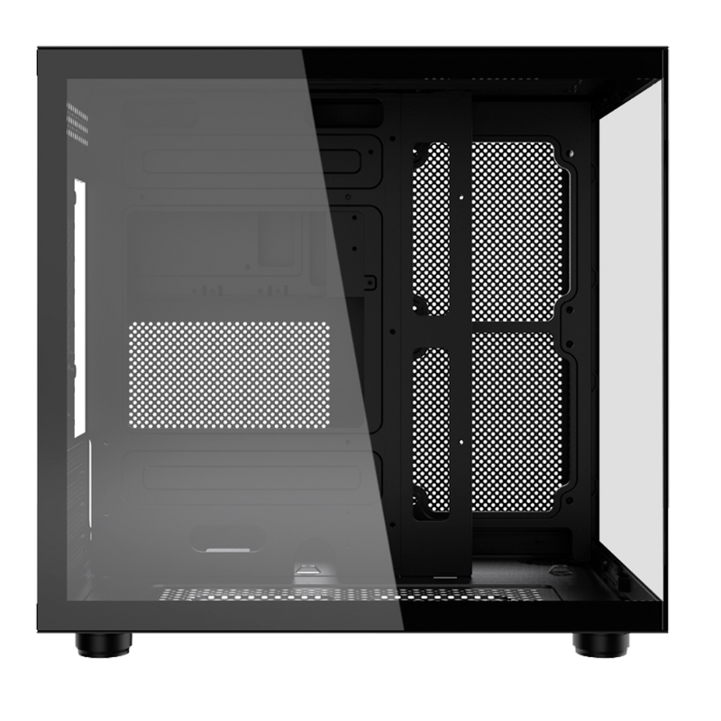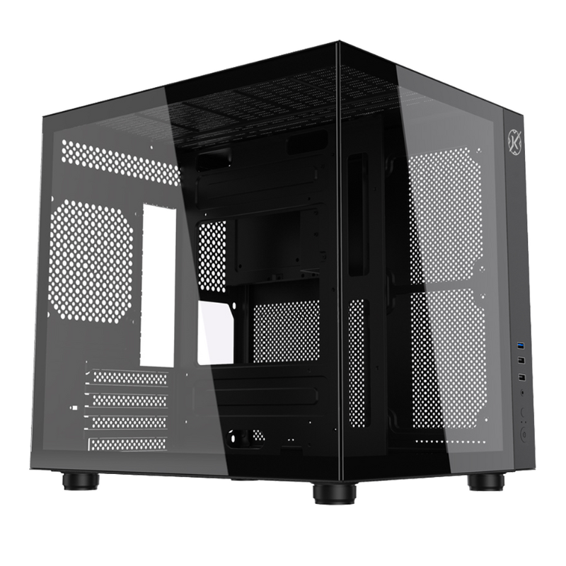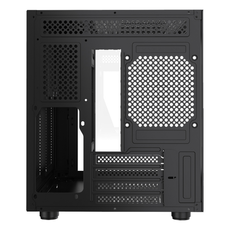 Compatível com placas-mãe Micro-ATX e Mini-ITX, o gabinete possui quatro slots de expansão PCI horizontais e flexibilidade para instalação de unidades de armazenamento, permitindo até três SSDs de 2.5″ e um HDD de 3.5″, ou duas unidades de cada. Ele oferece ainda suporte para placas de vídeo de até 320 mm de comprimento, air coolers com até 157 mm de altura e fontes de até 150 mm, acomodando bem os principais componentes do mercado.