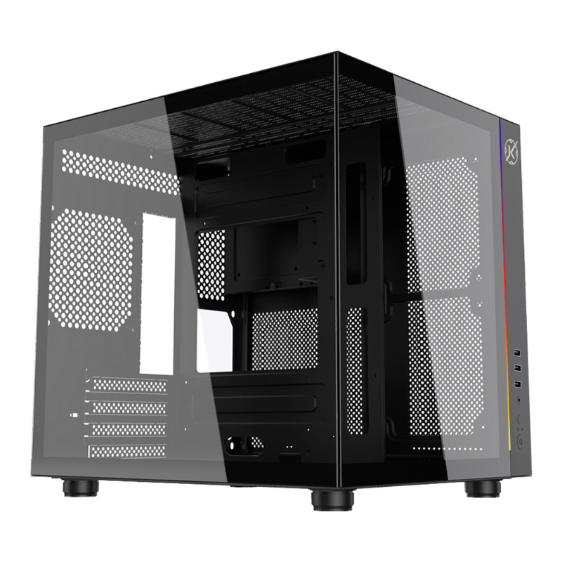 – Painéis frontal e lateral em vidro temperado proporcionando uma vista quase ininterrupta dos componentes internos