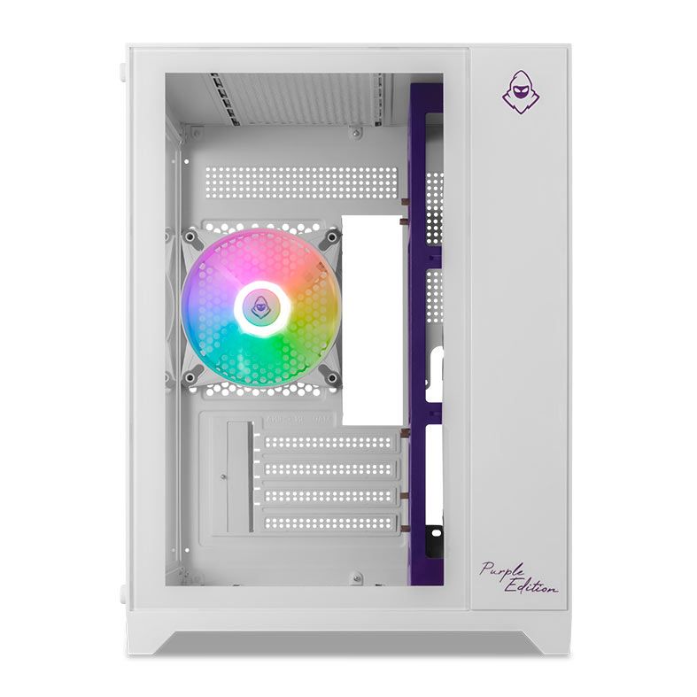 O Gabinete Gamer Mancer CV100 Purple Edition é a escolha ideal para quem busca montar um setup compacto, moderno e com visual diferenciado. Com acabamento na cor branca e lateral em vidro temperado, ele destaca os componentes internos e a iluminação do sistema, proporcionando um visual elegante e gamer ao mesmo tempo.