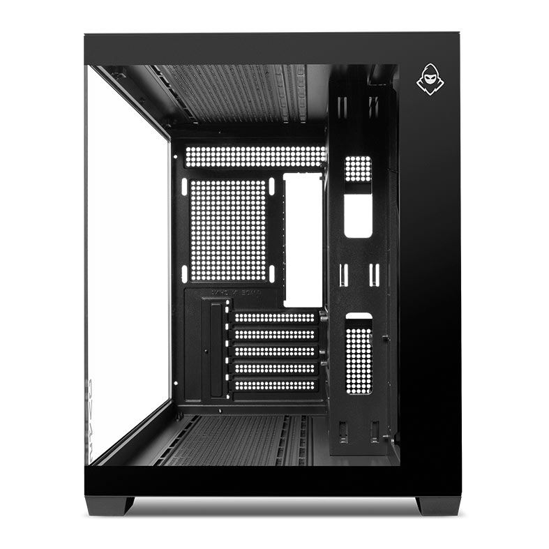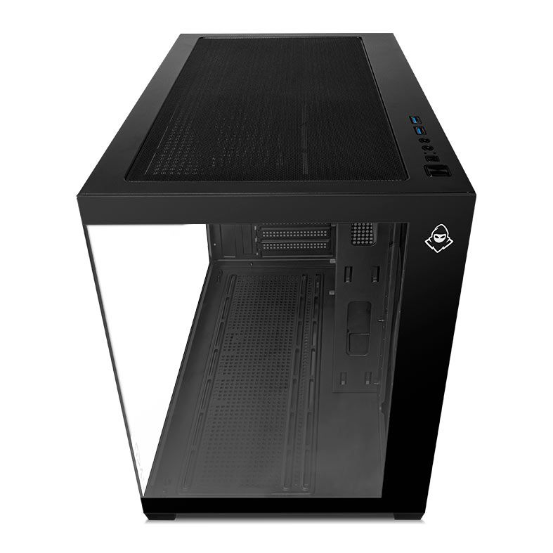 Projetado para máxima compatibilidade, o Mancer CV450 suporta placas-mãe nos padrões M-ATX e ITX, além de oferecer cinco slots de expansão PCI, garantindo flexibilidade na instalação de placas de vídeo e outros periféricos. Ele acomoda duas unidades SSD e um HDD, equilibrando velocidade e capacidade de armazenamento. Seu interior espaçoso suporta GPUs de até 400 mm e coolers de CPU com até 165 mm de altura, possibilitando a montagem de sistemas potentes em um formato compacto e bem ventilado.
