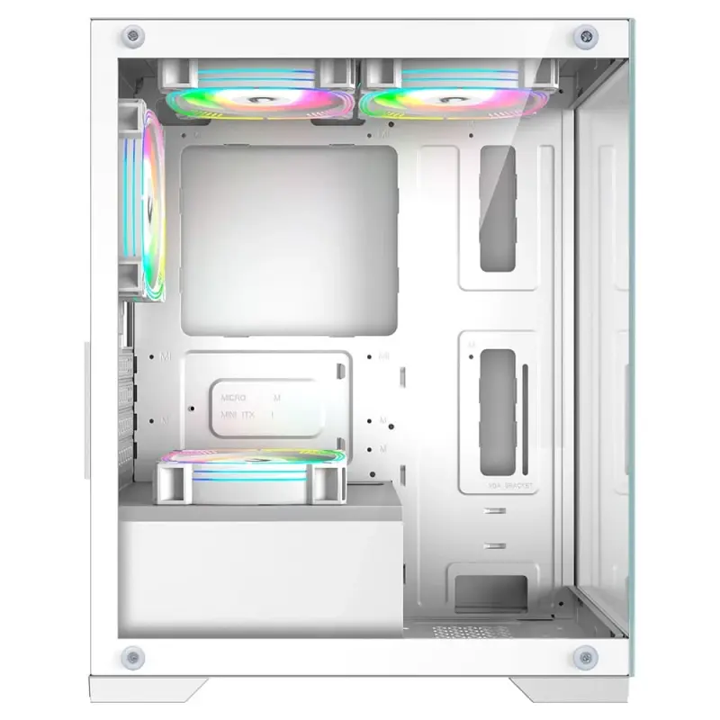 Projetado no padrão Mid Tower, o gabinete possui compatibilidade com placas-mãe M-ATX e ITX, além de suportar placas de vídeo de até 310mm, garantindo espaço suficiente para hardwares robustos. Também conta com suporte para air coolers de até 165mm, atendendo bem às necessidades de resfriamento de processadores mais exigentes.