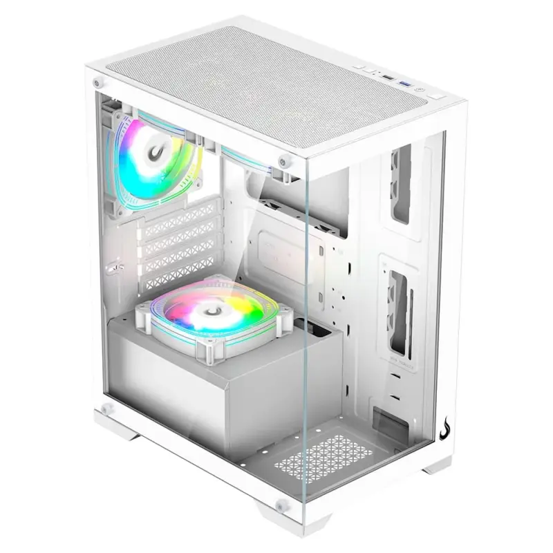 O Gabinete Gamer Rise Mode Crystal Glass RM-CA-CY-01-FW é a escolha ideal para quem deseja montar um setup moderno, elegante e bem organizado. Com design clean na cor branca e laterais em vidro temperado, ele oferece uma estética sofisticada, permitindo que os componentes internos fiquem totalmente visíveis, valorizando ainda mais o visual do PC.