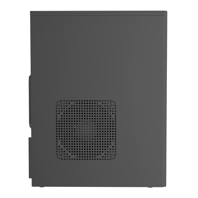 Construído em aço SPCC, o gabinete oferece boa resistência estrutural e organização interna eficiente para placas-mãe Micro-ATX. Conta com 4 slots PCI horizontais, baias para 1 HD 3.5” e 1 SSD 2.5”, além de painel frontal completo com duas portas USB 2.0, entrada para fone e microfone, garantindo praticidade no uso diário.