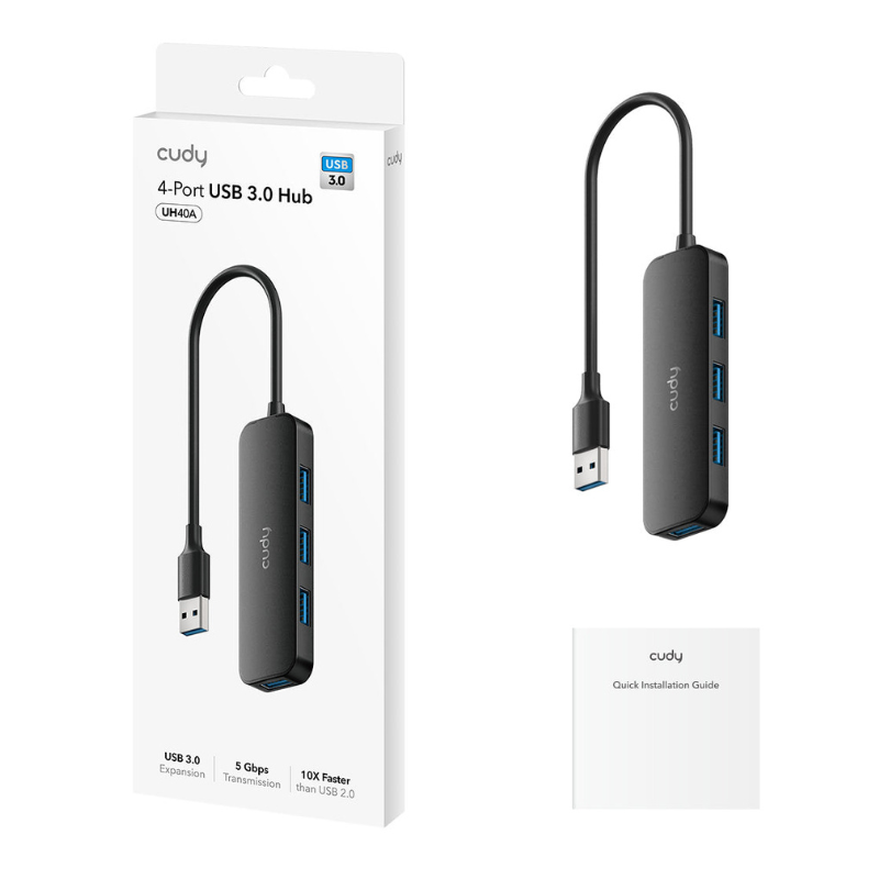 Hub USB Cudy UH40A 4 Portas USB-A 3.2 5 Gbps Preto – UH40A V1.0