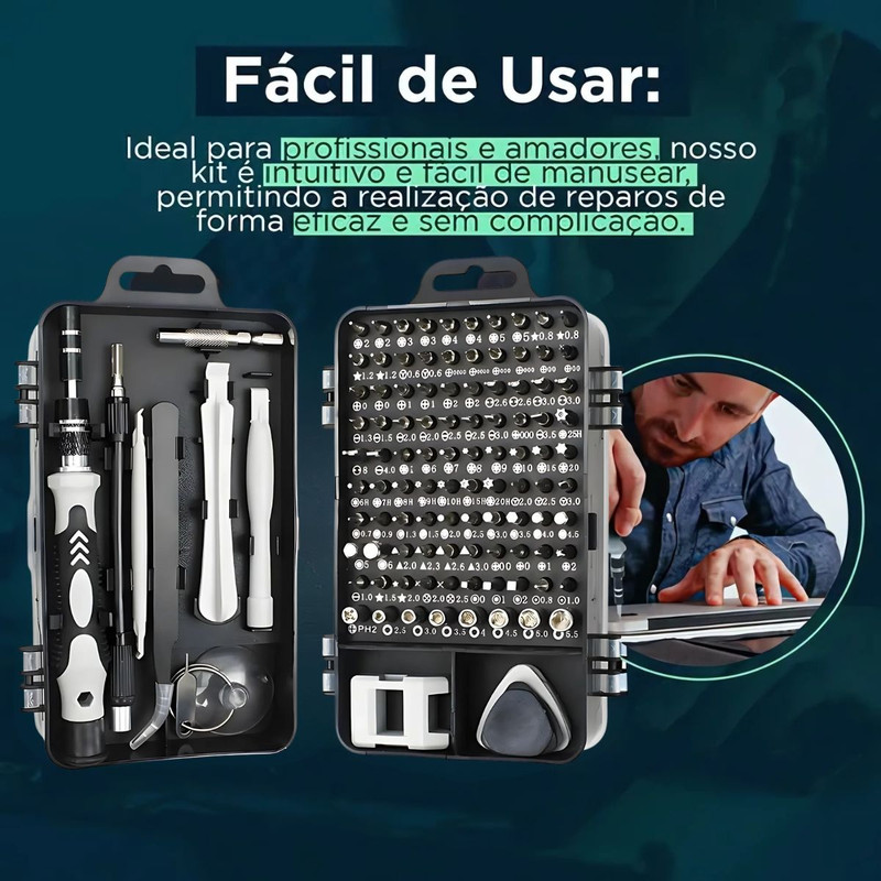 Este é o kit definitivo para quem busca eficiência, organização e qualidade em cada reparo. Seja em ambientes profissionais ou uso doméstico, este conjunto proporciona todas as ferramentas necessárias para desmontagens seguras e bem-sucedidas.
