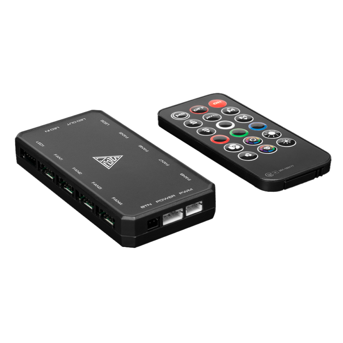 A controladora incluída no kit, conhecida como Caixa PWM Aeolus, possui dimensões de 92x46x13mm e conta com um conector de força SATA. Ela é capaz de suportar até 8 ventoinhas e 2 tiras de LED, oferecendo flexibilidade máxima para configurações avançadas. A controladora também possui um ímã embutido para fácil fixação dentro do gabinete e suporte para daisy chaining, além de ser compatível com software de sincronização de placas-mãe via cabeçalho endereçável de 5V.