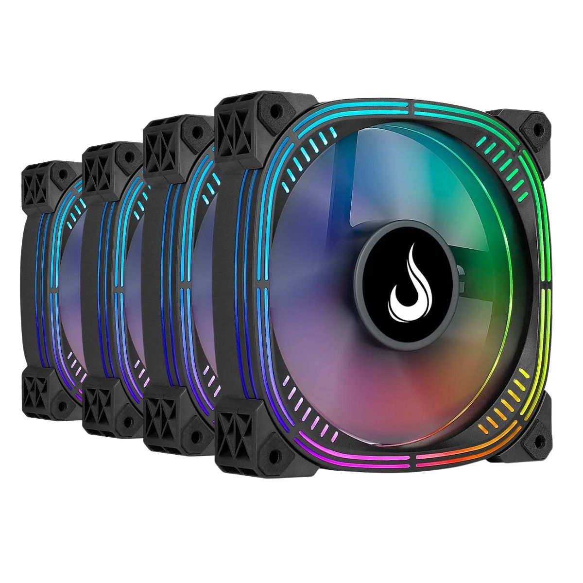 Kit 4 Fans Rise Mode Aura Pro Black ARGB 120mm Preto – RM-AUB-02-ARGB