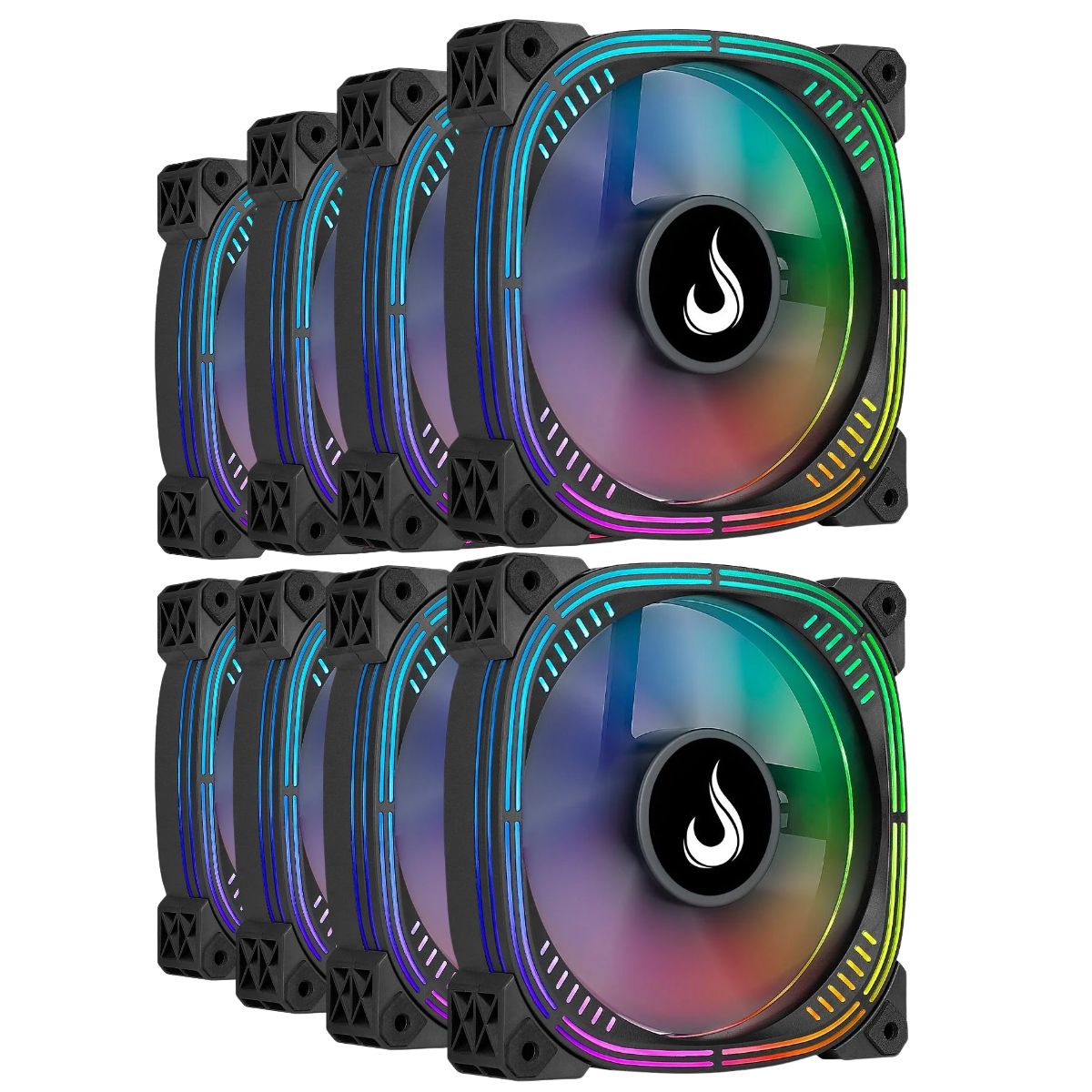 Kit 8 Fans Rise Mode Aura Pro ARGB 120mm C/ Controladora – RM-AUB-02-ARGB
