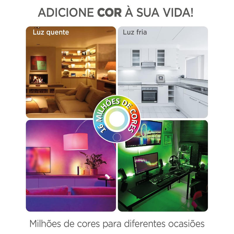 A Lâmpada Inteligente ELG LED RGB SHLL100 transforma qualquer ambiente com iluminação personalizável e tecnologia de ponta. Com 10W de potência e fluxo luminoso de 810 lúmens, ela oferece cores vibrantes e brilho ajustável, permitindo escolher entre 16 milhões de tonalidades RGB, além de branco quente e frio, para combinar com seu estilo ou necessidade do momento. Ideal para criar climas acolhedores, dinâmicos ou produtivos com apenas alguns toques no smartphone.