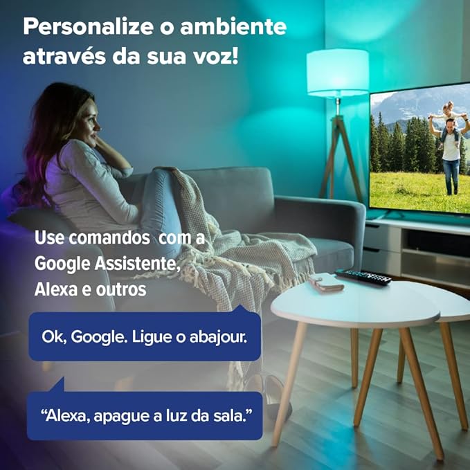 – Compatível com assistente de voz Alexa e Google Home