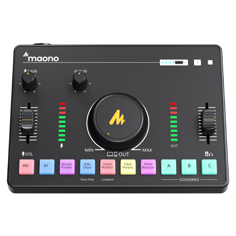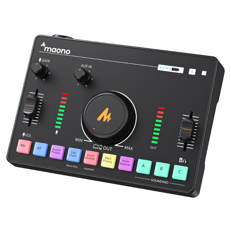 Com dimensões compactas de 245 x 157 x 55 mm e um painel intuitivo, a Maono Caster C2 Neo traz múltiplas entradas e saídas de áudio, tornando-se um verdadeiro hub de controle para o seu conteúdo. Seu conjunto de funções é ideal tanto para iniciantes quanto para profissionais que buscam uma solução prática, eficiente e de alto desempenho para gerenciamento de áudio em tempo real.
