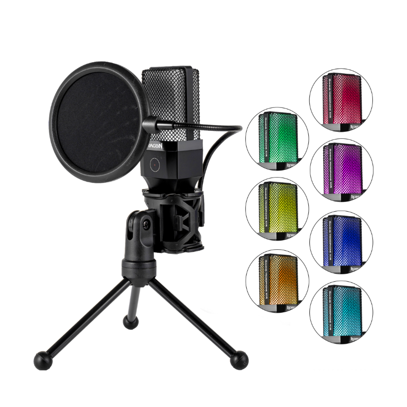 Microfone Gamer Redragon Adne RGB Codensador USB C/Suporte E Pop Filter Preto – GM212