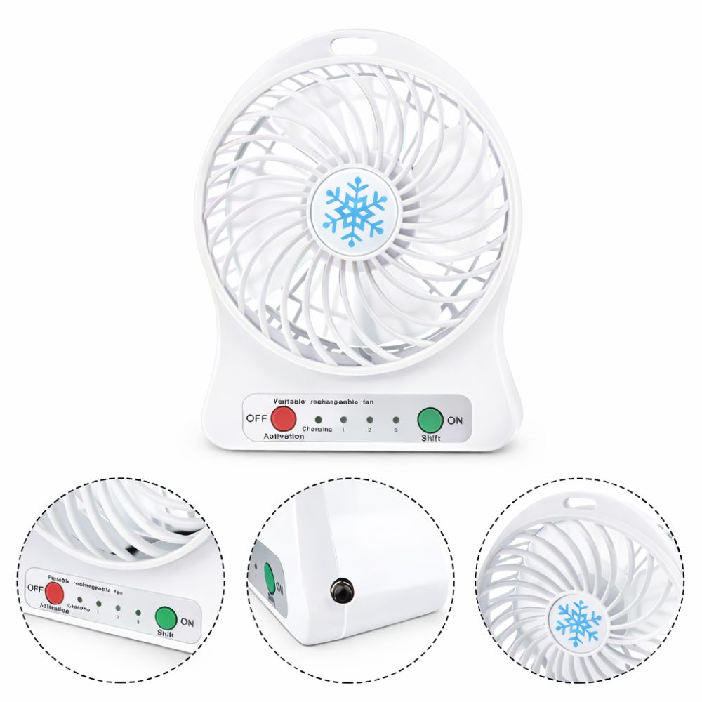 Mini Ventilador Portátil Recarregável Branco 3 Velocidades