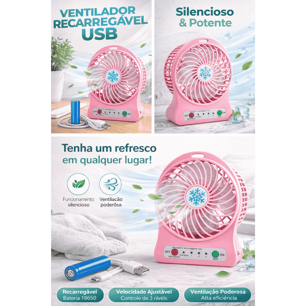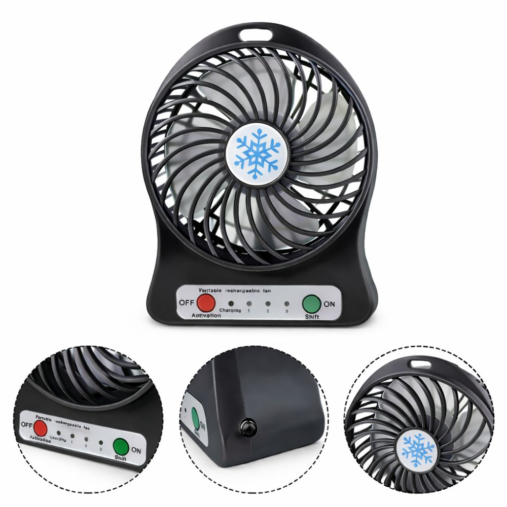 Mini Ventilador Portátil Recarregável Usb Preto 3 Velocidades – MM-H2-PRETO