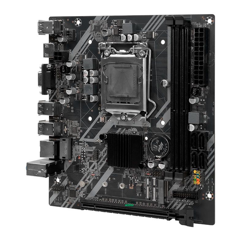 Seu design Micro ATX é compacto e eficiente, ideal para montagens em gabinetes menores, enquanto os conectores de alimentação e ventiladores garantem uma operação estável.