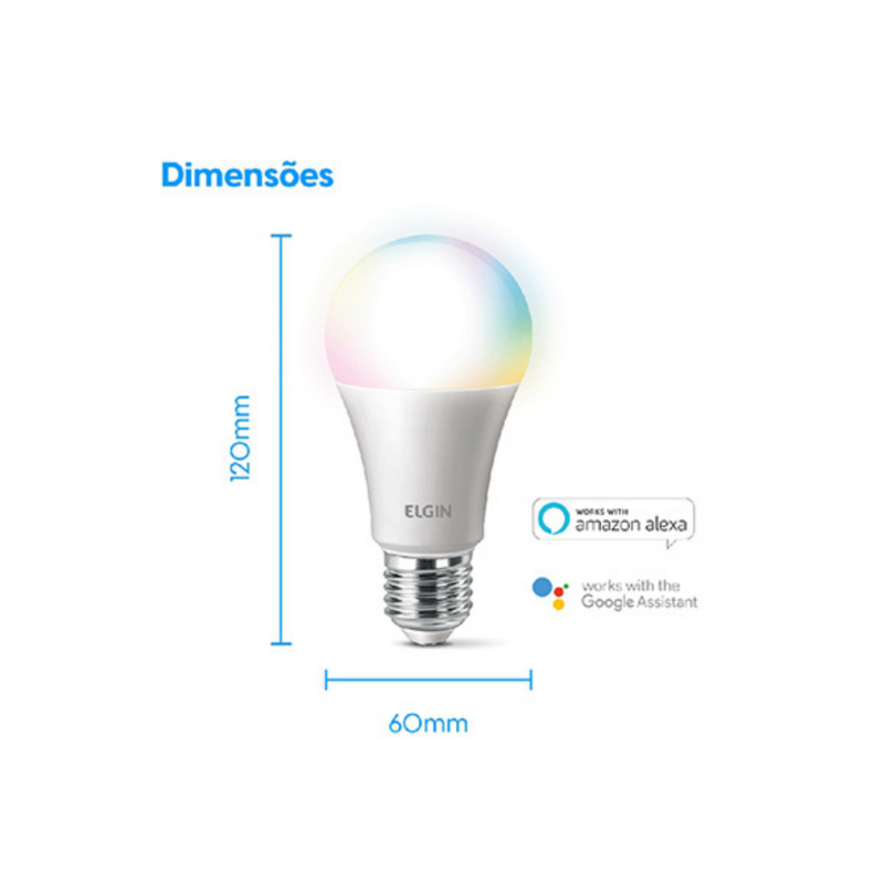 Smart Lâmpada Elgin LED Wi-Fi 10W Color Bulbo Com Alexa E Google Home – 48BLEDWIFI00