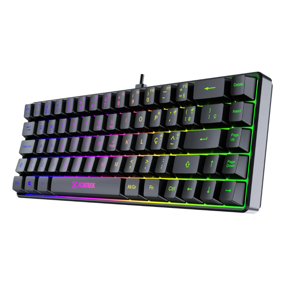 Teclado Gamer Fortrek Fearless 65 Compact Rainbow Membrana ABNT2 65% Preto
