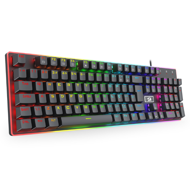 Teclado Gamer Redragon Ratri RGB Borda Iluminada USB Switch Marrom Full Size Preto – K595RGB