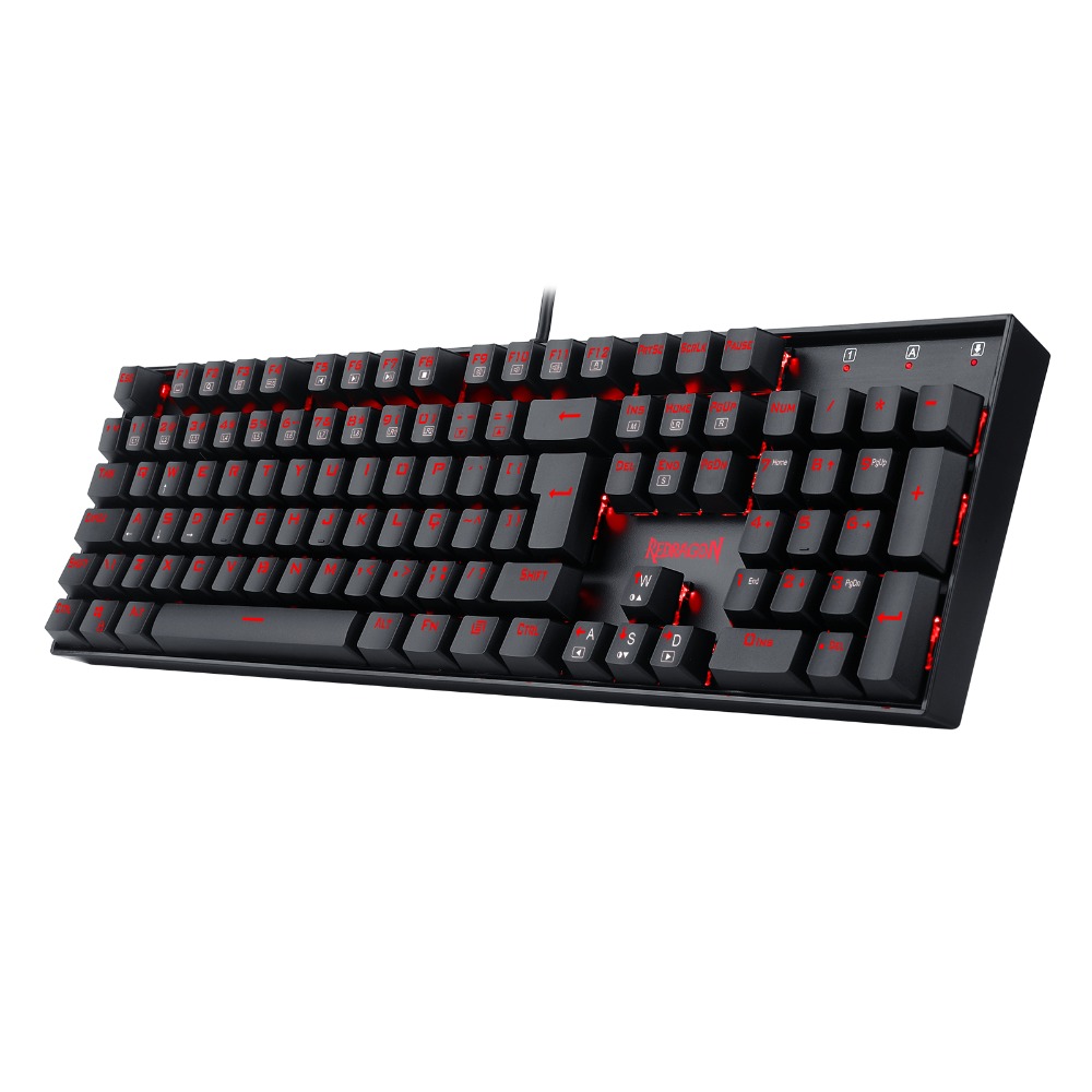 O Teclado Mecânico Gamer Redragon Mitra é a escolha ideal para gamers que buscam performance e conforto durante longas sessões de jogo. Com sua iluminação LED vermelha, cada tecla brilha intensamente, proporcionando um visual atraente e funcional.