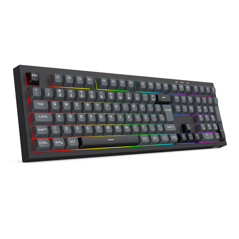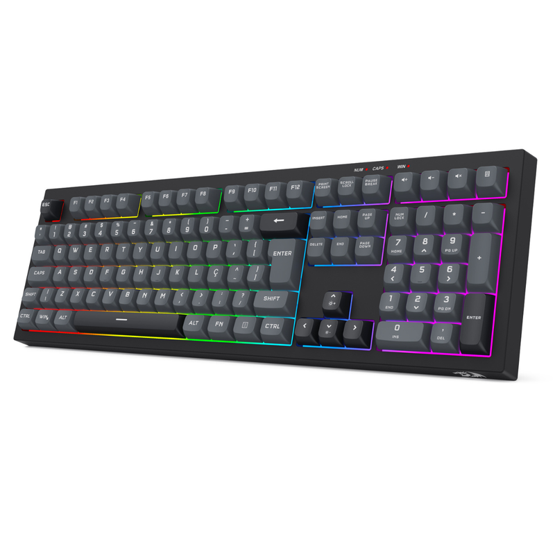 Teclado Membrana Redragon Crux Rainbow Sem Fio Full Size Preto e Cinza – K518R-WL-GB