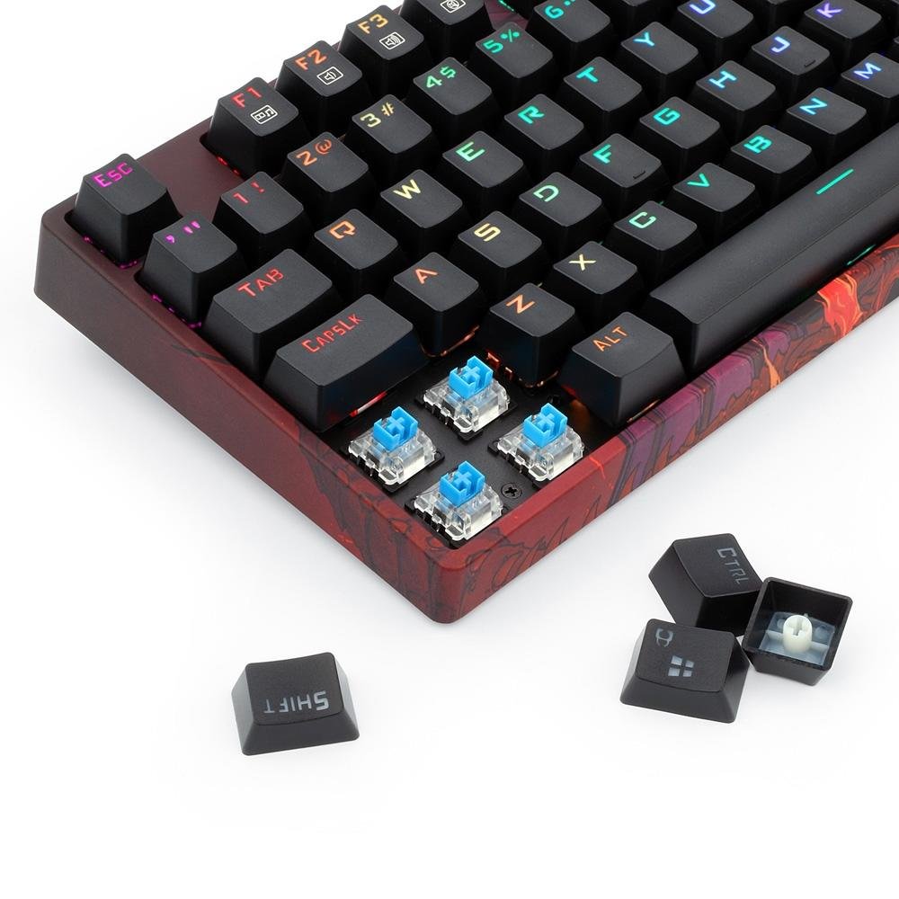 Este teclado destaca-se não apenas pela sua estética incrível, mas também pela tecnologia inovadora que oferece. Equipado com switches Redragon V-Track Optical Blue, que são acionados de forma óptica para uma resposta precisa e durabilidade notável, alcançando até 100 milhões de acionamentos. Além disso, os switches são DIY, permitindo que sejam removidos com a ferramenta inclusa para personalização.