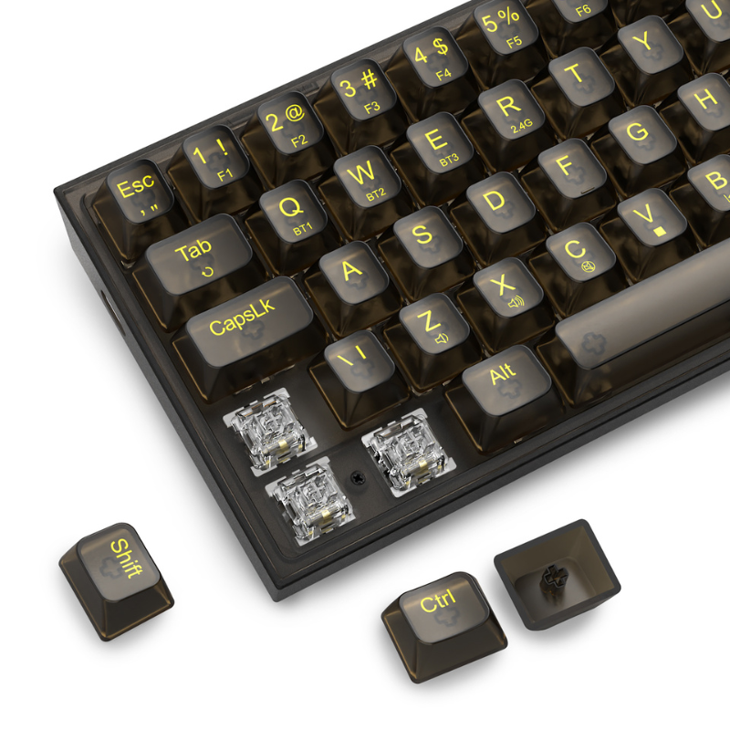 – Keycaps Translúcidas pretas para criar um efeito diferenciado com a iluminação
